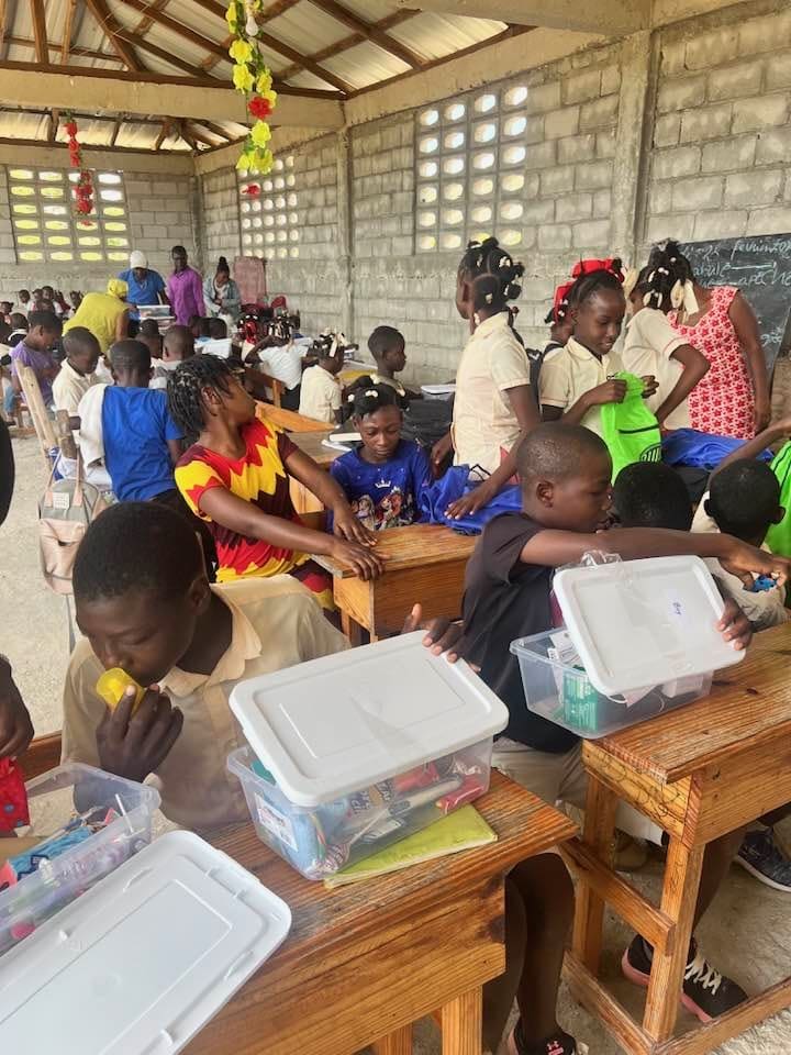 Club members filled 108 boxes that were shipped to Haiti, along with other necessities and additional gift boxes from partners in Florida. Children in the rural region of Sarazin were overjoyed to receive these gifts and, with big smiles, eagerly explored the contents of each box. The day was filled with fun as the children enjoyed being kids, laughing, playing, and sharing a hot meal of chicken, rice, and beans.